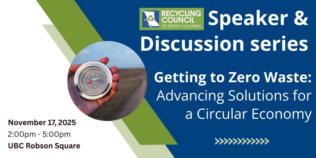 We’ll hear from speakers from organizations including Vancouver Food Runners, The Thingery, Our Social Fabric, and Ridge Meadows Repair Cafe. This event will connect community organizations, local government staff, and circular economy practitioners to share success stories, identify barriers, and generate concrete ideas for advancing zero waste solutions in real, local ways.
